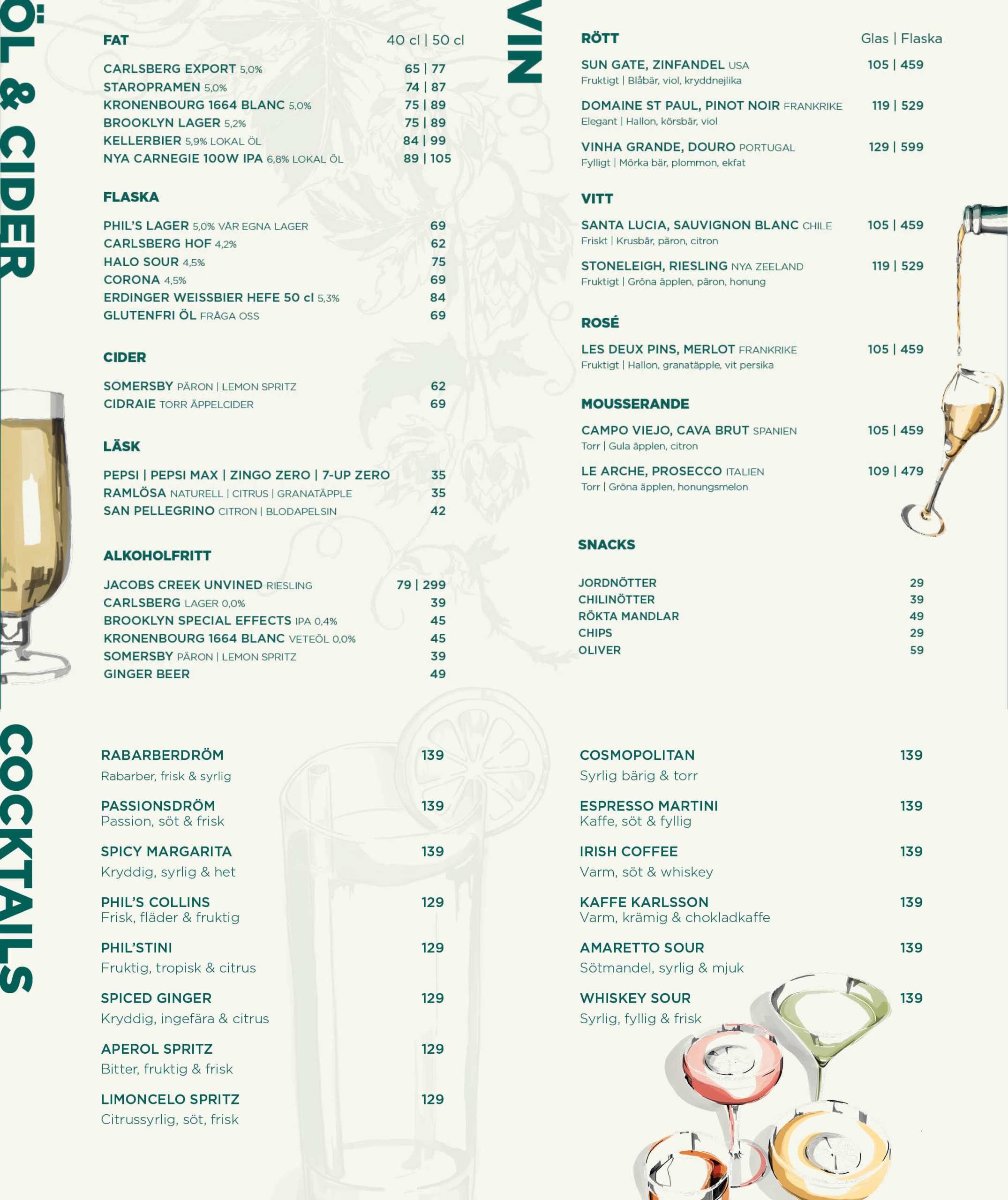 Välkommen till Phil’s Sergel, vår största restaurang belägen mitt i centrala Stockholm. Restaurangens inbjudande miljö erbjuder generösa ytor, gott om sittplatser och utsikt över stadskärnan.